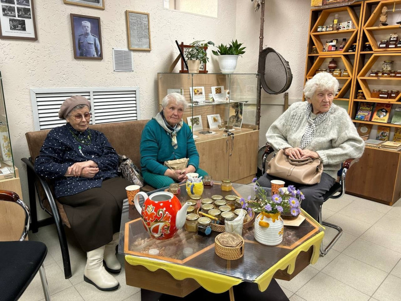 Сегодня к нам заглянули три замечательные подружки-веселушки: Валя, Рая и Ирина! Эти "молодые бабушки" с горящими глазами погрузились в увлекательную обзорную экскурсию, узнав о древней истории пчеловодства, удивительной жизни пчёл и секретах рождения мёда.